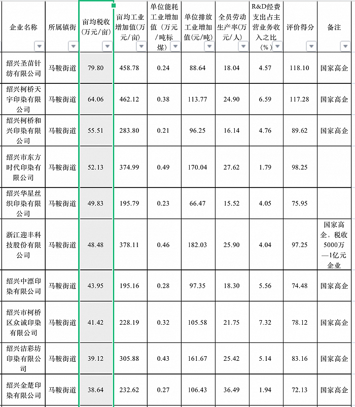 2019年柯橋區(qū)工業(yè)企業(yè)畝均效益評定結果。信息來源:柯橋區(qū)人民政府